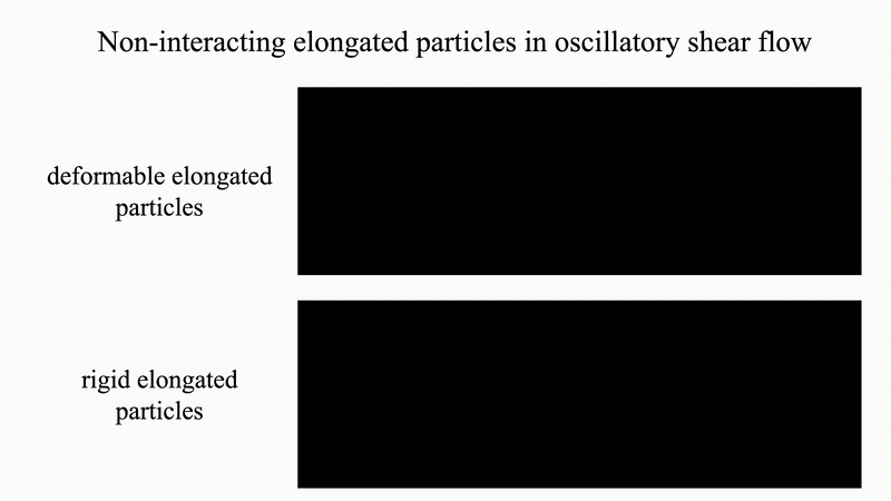 We use a minimal theoretical model to show that when deformable, elongated particles are placed in an oscillatory shear flow, they can synchronize their shape oscillations leading to spontaneous nematic alignment without any particle-particle interactions. Rigid elongated particles don’t show this behavior, whereas deformable particles do due to their ability to undergo shape changes and phase-lock with the driving flow.